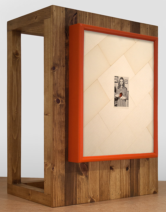 Collage, old notecards, hand carved MDF frame, enamel, and wood.